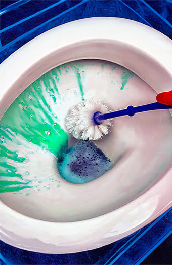 High-pressure water cleaning of sewer lines connected to toilets, efficiently removing roots, grease accumulation, and persistent build-up beyond the fixture.